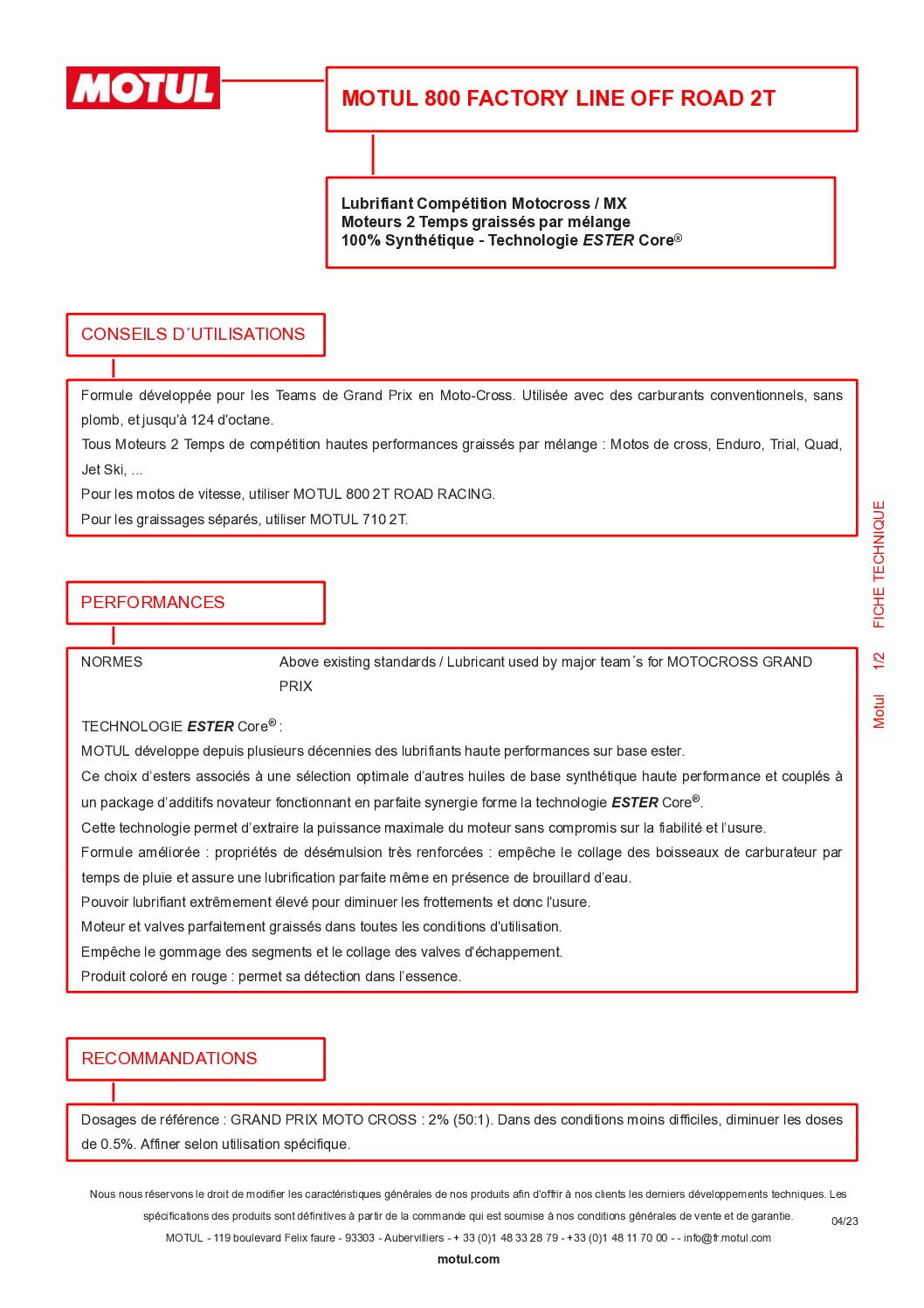 Formule développée pour les Teams de Grand Prix en Moto-Cross. Utilisée avec des carburants conventionnels, sans plomb, et jusqu’à 124 d’octane.
