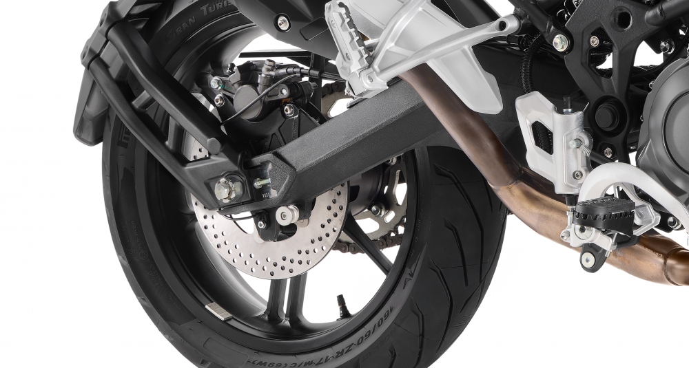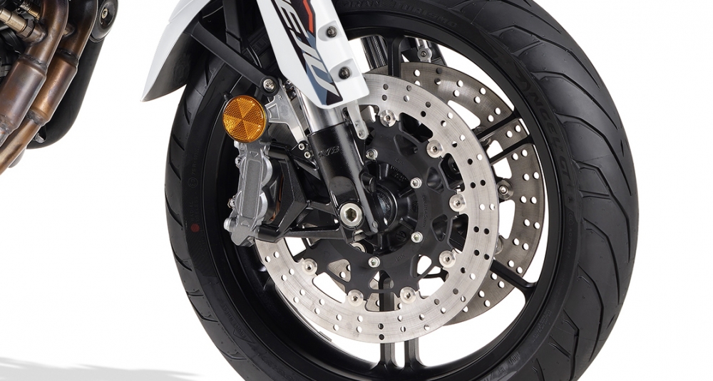 Son moteur bicylindre 4T de 554 cm³ équilibré, homologué EURO 5+, délivre 47 ch et une réponse instantanée qui vous surprendra dès les premiers kilomètres. Elle est aussi équipée d’un châssis de premier ordre, avec suspensions KYB, jantes en aluminium de 17”, et un puissant système de freinage : double étrier radial 4 pistons et double disque à l’avant, plus étrier et disque à l’arrière. Le tout contrôlé par un système ABS Bosch double canal dé connectable, pour une sécurité optimale dans chaque virage.